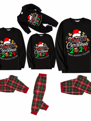 Black Long Sleeve 2024 Christmas Print Christmas Holiday Family Matching Pajama Set