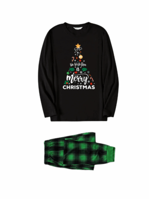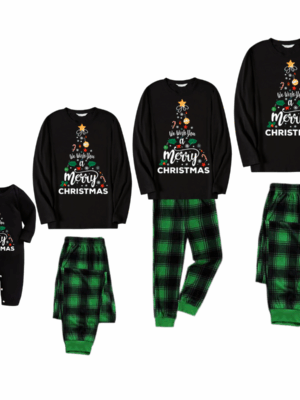 Black Long-Sleeved Cotton with Christmas Tree Print Holiday Family Matching Pajama Set