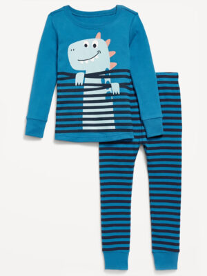 Blue Cartoon Print with Black Stripe Christmas Family Matching Pajamas Kids Pajama Set