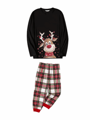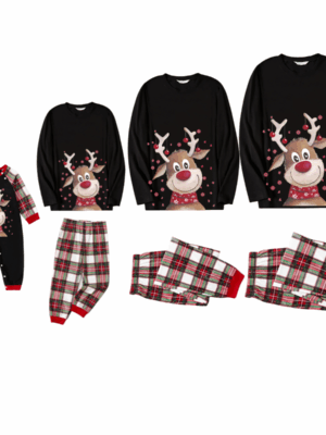 Black Long-Sleeved Deer Print Christmas Holiday Family Matching Pajama Set
