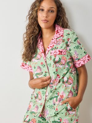 Holiday Hens – Short PJ Set – Sage