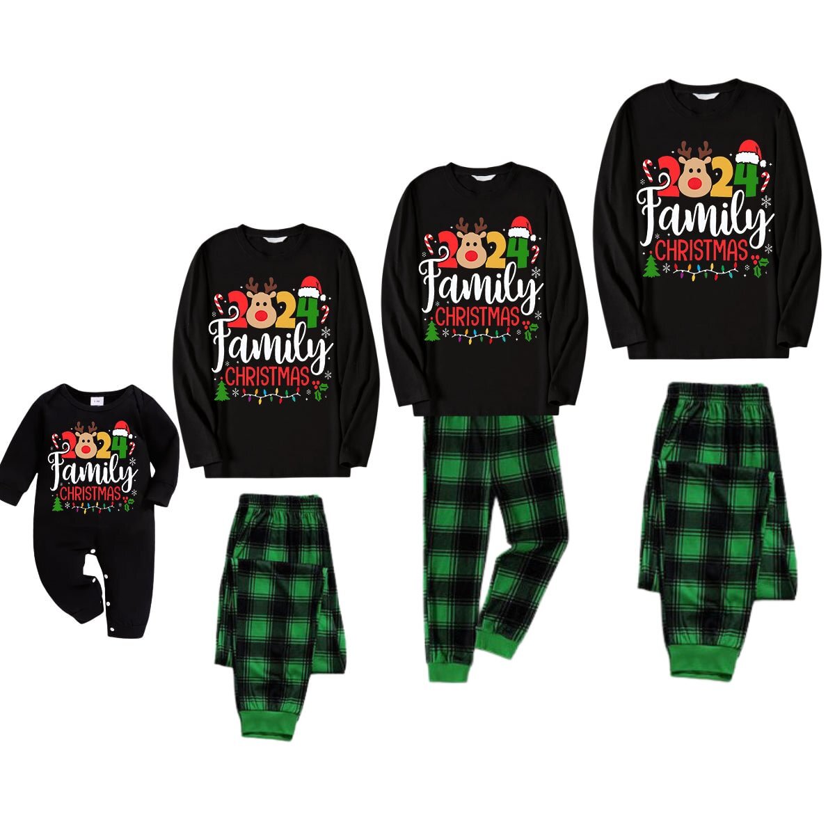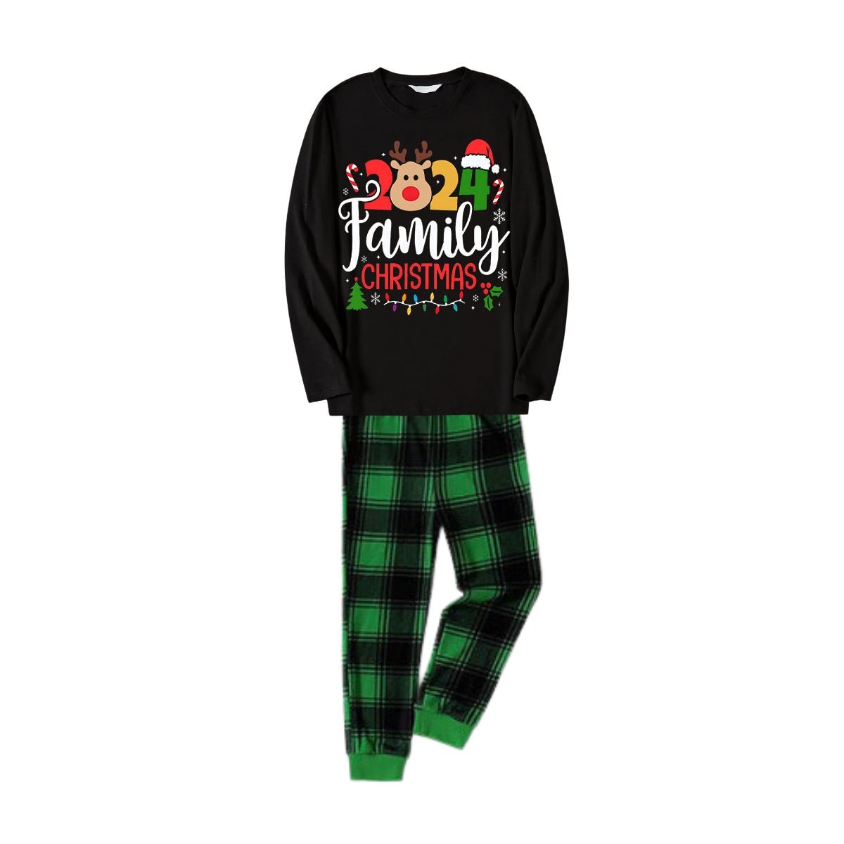 “2024 Family Christmas” Black Top and Plaid Pants Long Sleeve Christmas Family Matching Pajama Set
