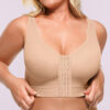 Our Bare Essentials™ AirSlim® Unlined Wireless Back Support Bra is designed for comfort and posture support. This wire-free bra features double-layer cups for a natural shape and criss-cross back bands to improve your posture. The adjustable front closure and wide straps provide a customized fit, while the elastic underbust band offers all-day support. Ideal for daily wear and various occasions.