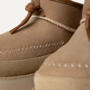 - Asymmetrical topline, Round waxy cotton lace, The Collar binding is made with Lamb Suede from farms that practice regenerative agriculture, The heel pull is made with Lamb Suede from farms that practice regenerative agriculture