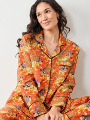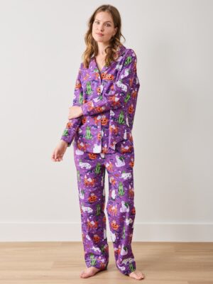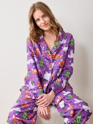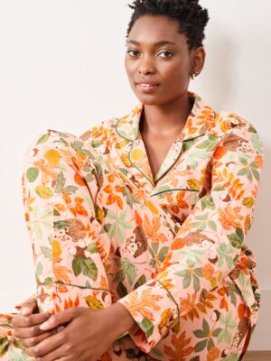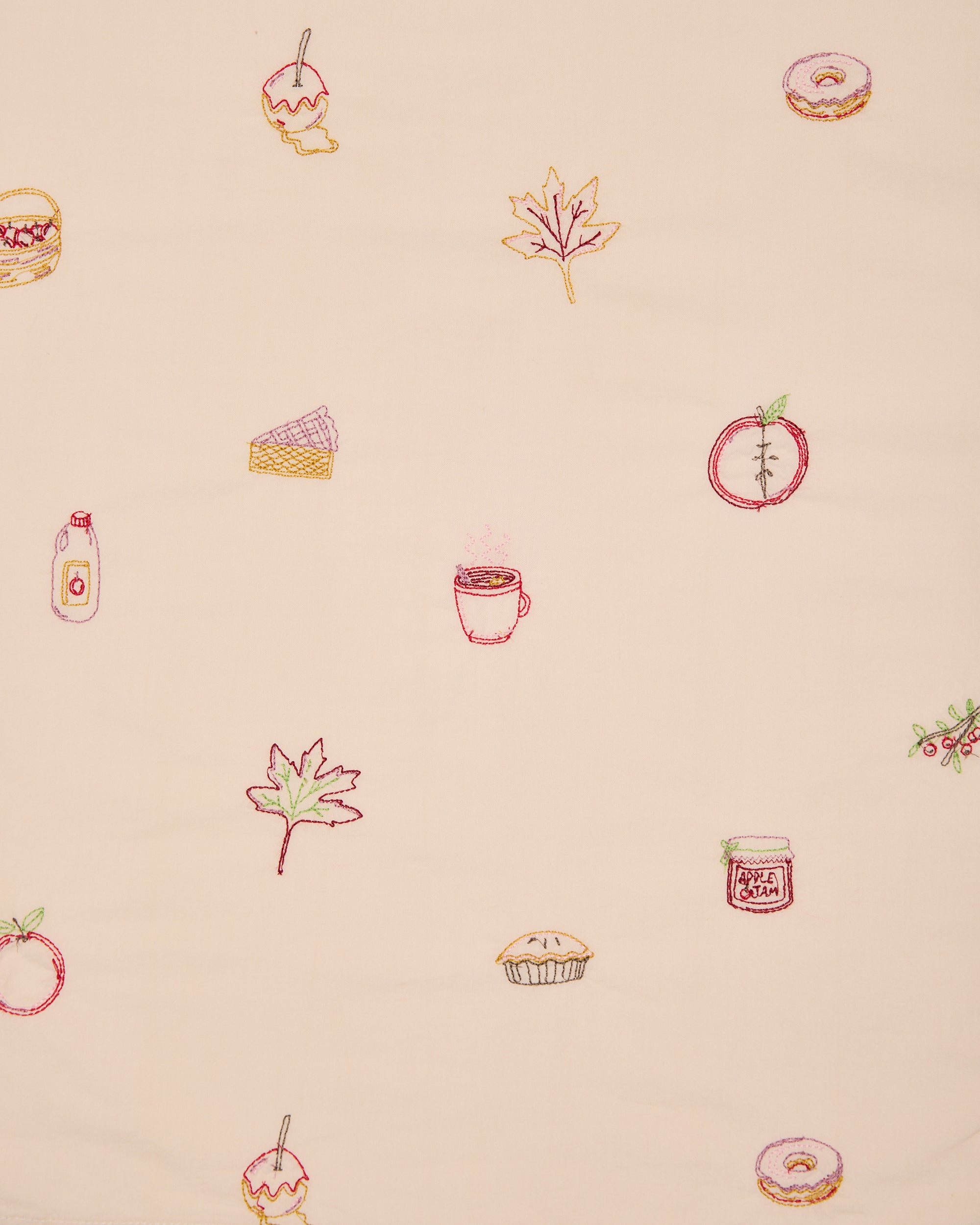 Celebrate harvest season in our Apple Picking cotton sleep shirt, featuring whimsical embroidered autumn motifs on soft Cream organic cotton. This luxurious button-down sleepwear piece is full of fall charm, featuring stitched apples, pies, and cider motifs. Perfect cotton loungewear for cozy nights and crisp fall mornings. Note this style does not include pockets. Explore our , , and .