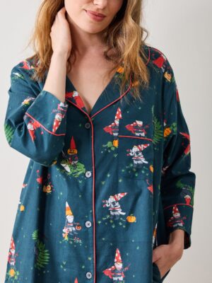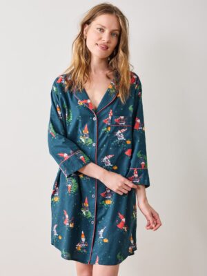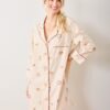 - Fit: Relaxed-fit button-down sleep shirt with 3/4 length sleeves. 36″ length on size small.