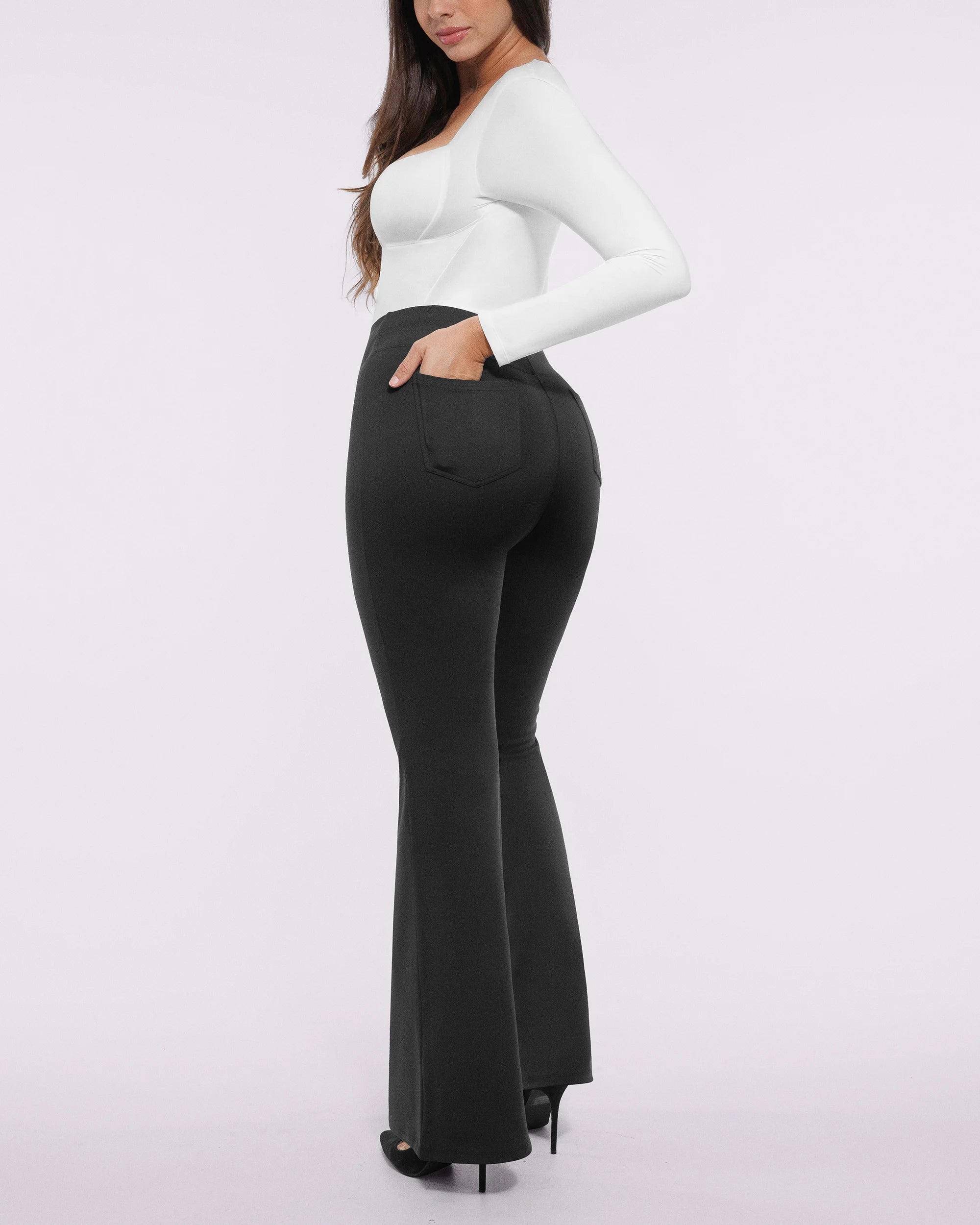 Work-ready stretch flares that smooth, sculpt, and move with you – from office to errands with effortless polish. The built-in tummy control waistband and curve-flattering flare work magic, while hidden pockets keep you organized.