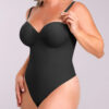 Introducing Bare Essentials™ AirSlim® Strapless Thong Bodysuit. Its adjustable convertible straps allow styling versatility, with free transparent straps included. The underwire and molded cups offer lift and sculpting, while the double-layer abdominal panel delivers targeted compression for a flawless silhouette.