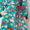 Channel vintage glamour in our Blinis & Martinis satin lounge robe in elegant Mid-Century Blue. This chic loungewear robe features playful cocktail motifs on luxuriously soft Eco Satin. The relaxed silhouette offers comfortable coverage with deep pockets for essentials and a matching belt. Sophisticated blue sleep robe ideal for winding down with your skincare routine. Explore more , , and .