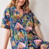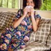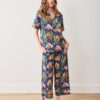 S’mores and bonfire stories, please. This camp pajama set in starlight blue features retro A-frame cabins and glowing campfires on breathable organic cotton. With cropped pants, a relaxed fit, and pockets, it’s the perfect women’s cropped sleepwear for summer nights and long-weekend getaways. Explore more , , and .