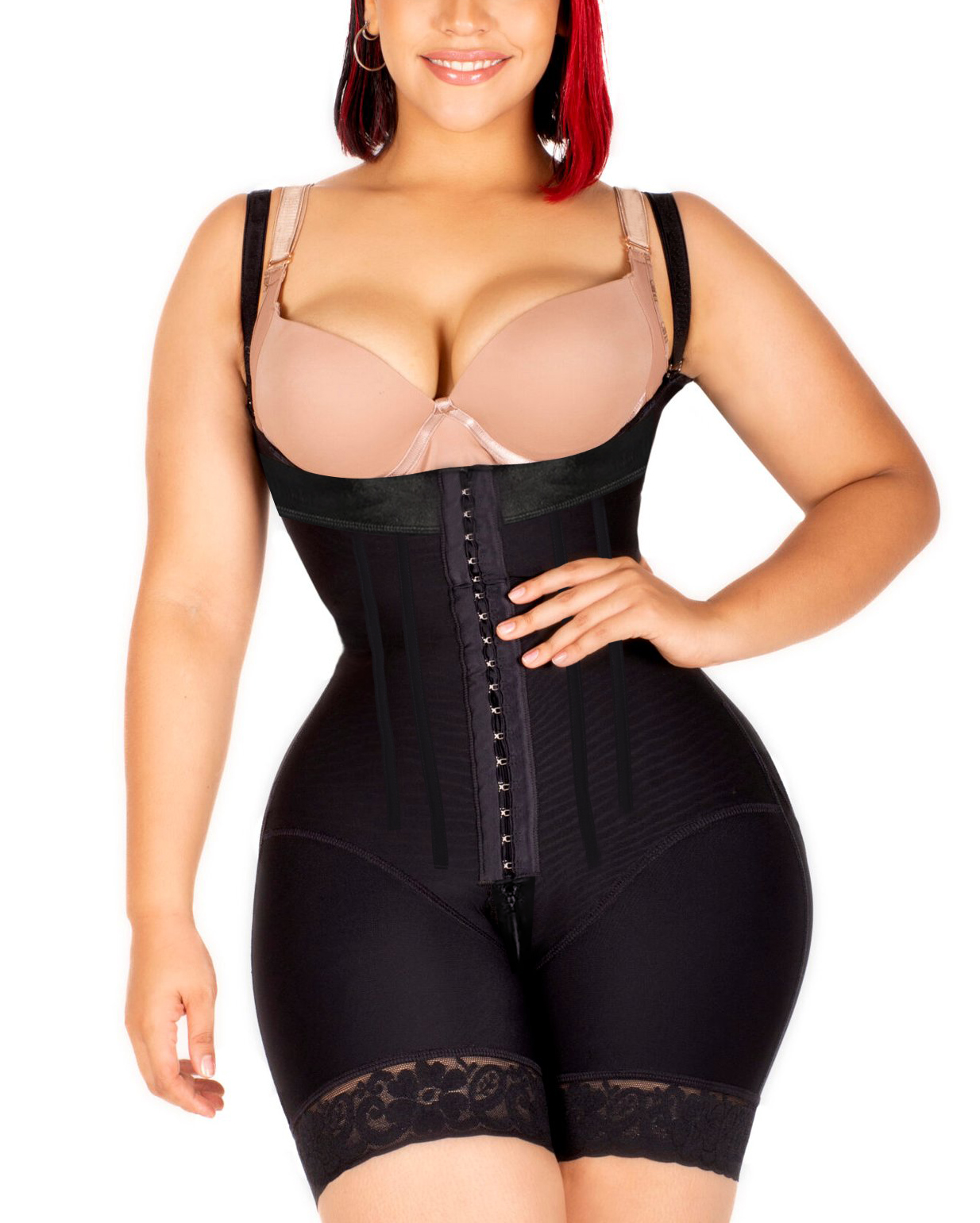 Enhance your curves with our Buckle Front Open Bust Crotch Zipper Tummy Control Shapewear Bodysuit! The open bust design allows you to wear your favorite bra, while the crotch zipper provides convenience. Designed with tummy control features, this shapewear smooths and shapes your silhouette beautifully. Whether for everyday wear or a special occasion, this bodysuit is a must-have in your wardrobe.