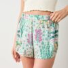 - Pull-on styled shorts with slightly curved edges.