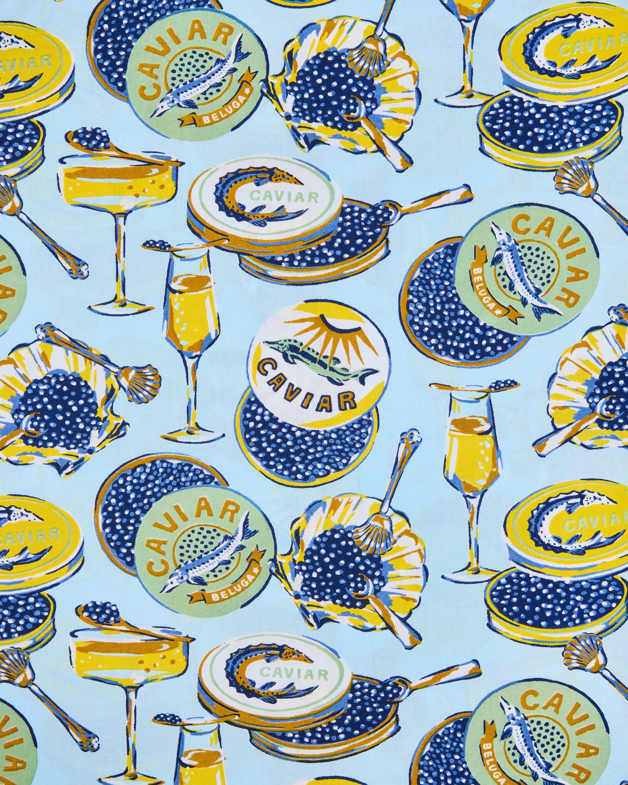 - The Pattern: Celebrate life’s luxuries and elevate your lounge with our Champagne & Caviar sleepwear capsule. Featuring both Eco Satin and organic cotton pajama styles, this lavish collection is perfect for those with an appetite for the finer things in life. With retro caviar tins and bubbly champagne flutes, it serves up total indulgence.