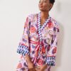 Celebrate with our Champagne & Caviar satin robe in Lavender Spritz. This champagne print sleepwear features hand-painted retro caviar tins and bubbly flutes on silky Eco Satin. The elegant full-length design includes deep pockets and dual closure options for your perfect fit. A luxury lounge robe made for champagne toasts at sunset or leisurely mornings. Explore more , and .