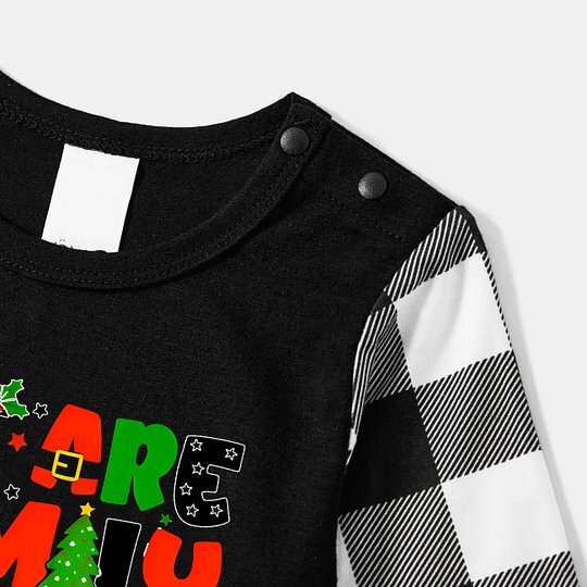 Christmas Colorful Multi-Element Letter Black Long Sleeve Top Family Matching Pajamas