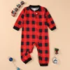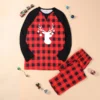 Christmas Family Pajamas Matching Set Long Sleeve Elk Print T-shirt with Plaid Trousers