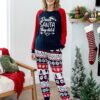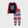 Christmas Matching Family Pajamas Set Glow In The Dark Santa Claus Print PJS with Christmas Socks Deep Blue