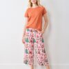 - Sizing: Mid-rise fit pajama pants feature an elastic waistband and drawstring for comfort. Designed with a 22″ cropped inseam.