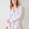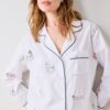- The Pattern: Mermaids come in all shapes and sizes, just like we do. Symbolizing renewal and revitalization thanks to their ties to the water, these embroidered pajamas were inspired by a desire to unwind and reach a place of rest and relaxation. The unique beauty of these under-the-sea beings is reflected in the quirky illustrations embroidered across the design.