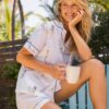 - The Pattern: Mermaids come in all shapes and sizes, just like we do. Symbolizing renewal and revitalization thanks to their ties to the water, these embroidered pajamas were inspired by a desire to unwind and reach a place of rest and relaxation. The unique beauty of these under-the-sea beings is reflected in the quirky illustrations embroidered across the design.