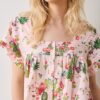 - Fit: Relaxed-fit nightgown with short sleeves, button-front styling, and ruffled hem. Measures 35″ length.