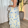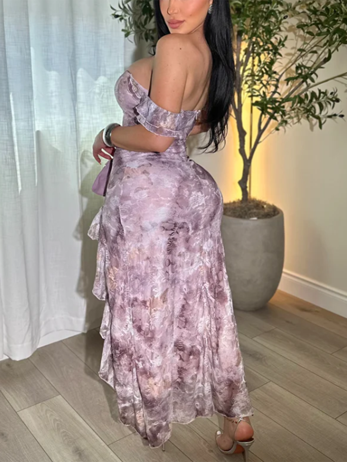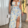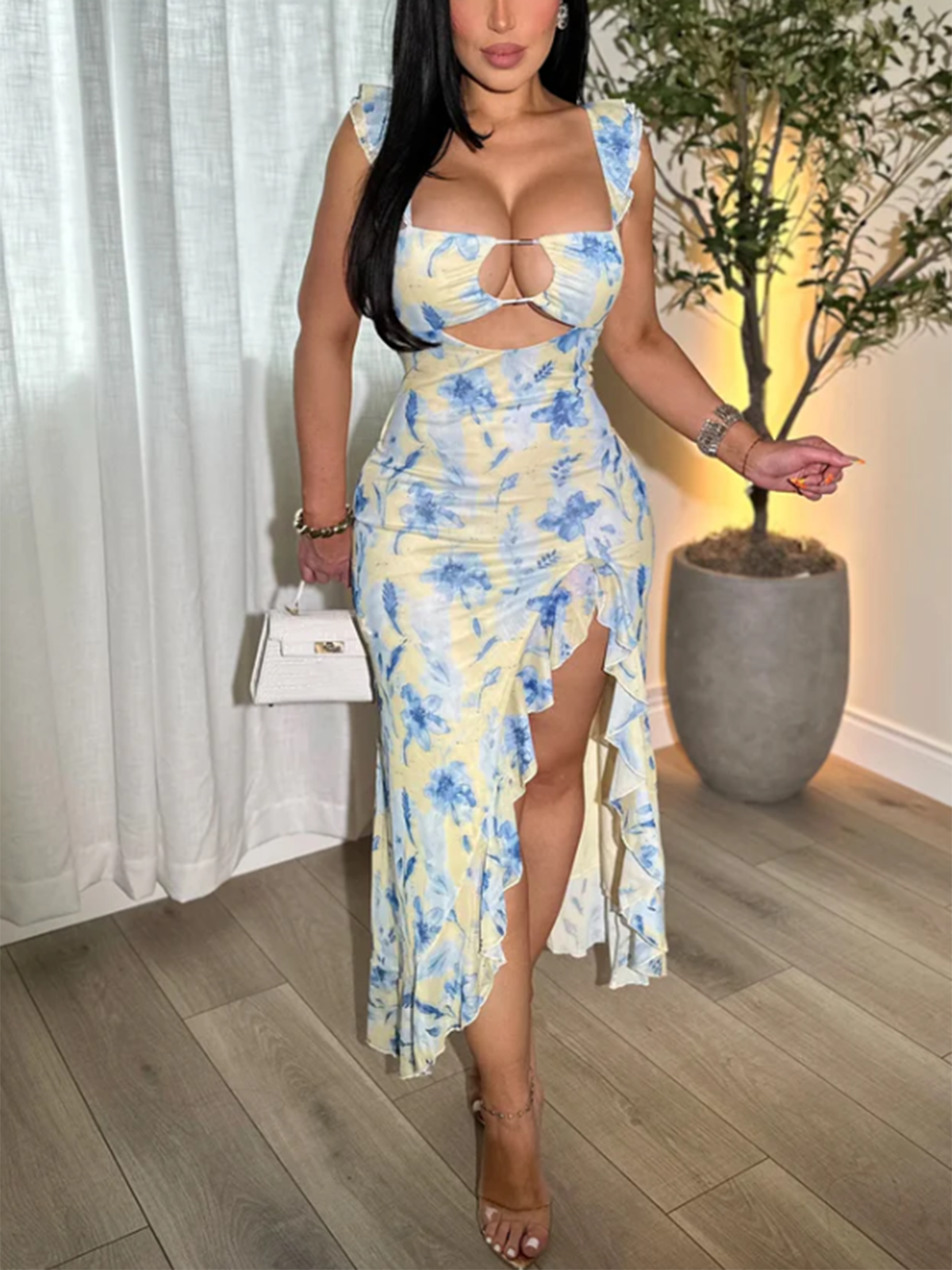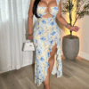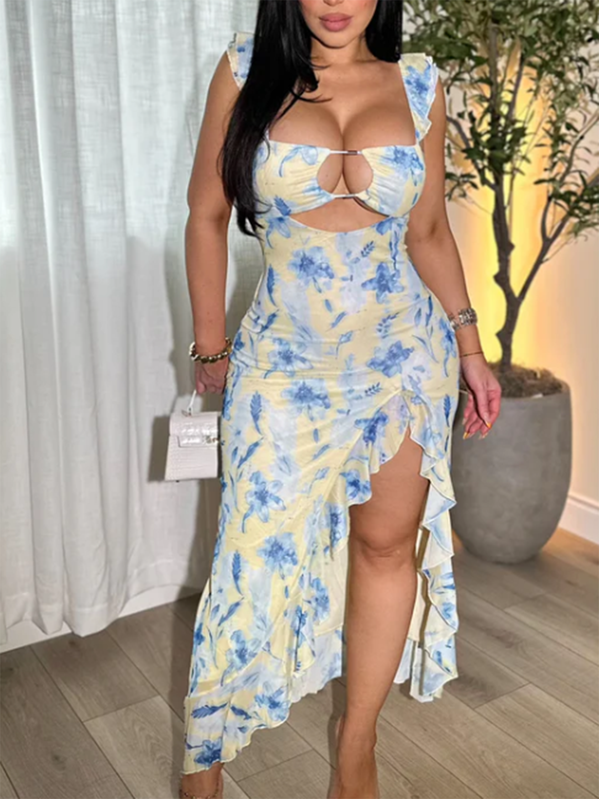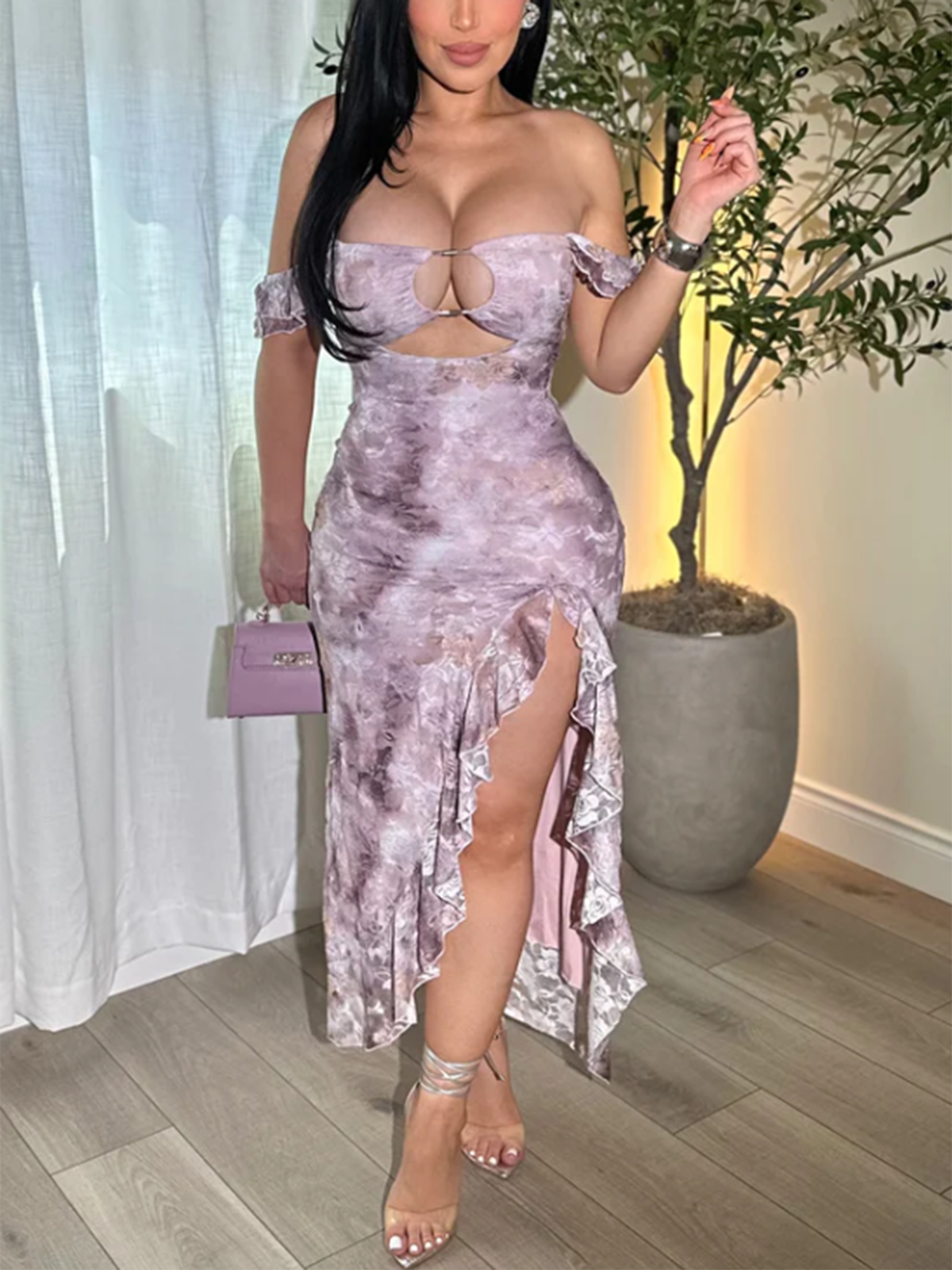 Elegant Style Beveled Lotus Leaf Lace Chest Hollow Design Sexy Gentle Dress Long Skirt