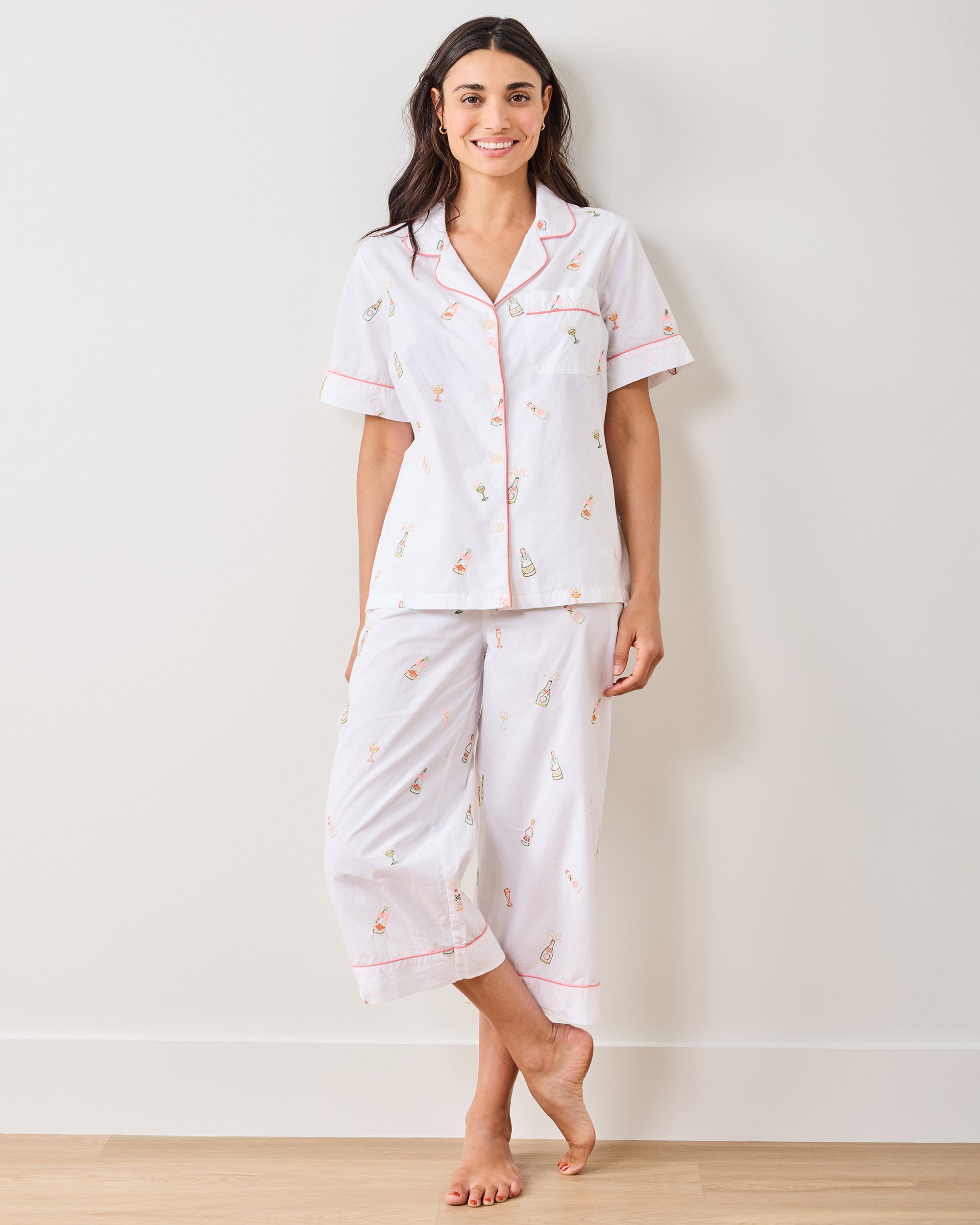 Bubbly Brunch – Short Sleeve Top & Cropped Pants Set – Cloud