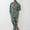 - Sizing: Men’s PJ set with roomy button-down long-sleeve top. Mid-rise pants feature a relaxed fit, elastic waistband, and adjustable drawstring. Features deep pockets and a 28″ inseam.