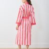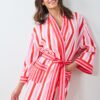 Wrap yourself in holiday sweetness with our Gift Wrapping lounge robe in Peppermint Swirl. This holiday striped robe features classic stripes with a festive twist, crafted from breathable organic cotton. The versatile unisex design includes an adjustable belt and pockets for your essentials. Perfect cotton robe for cozy holiday layering. Discover more in our and .