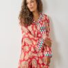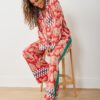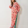 Take a bite out of the season with our Gingerbread Party satin pajama set in Ruby. This returning fan favorite features a playful gingerbread print on luxurious Eco Satin with relaxed oversized comfort. Our Rittenhouse satin lounge set offers a wide-leg silhouette, complete with pockets. Luxurious holiday satin pajamas for cozy nights by the tree. Explore our , , and .