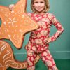 Sweet dreams await with our Gingerbread Party kids’ pajama set in festive Ruby. These adorable kids’ holiday pajamas feature whimsical gingerbread cookies dancing across soft cotton knit jersey. Our snug-fit cotton pajamas offer a comfortable waistband and a close-to-body fit designed for safe sleep. Delightful children’s festive sleepwear for Christmas morning magic. Discover more joyful prints in , , and .