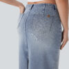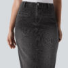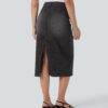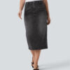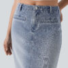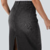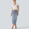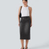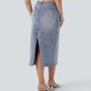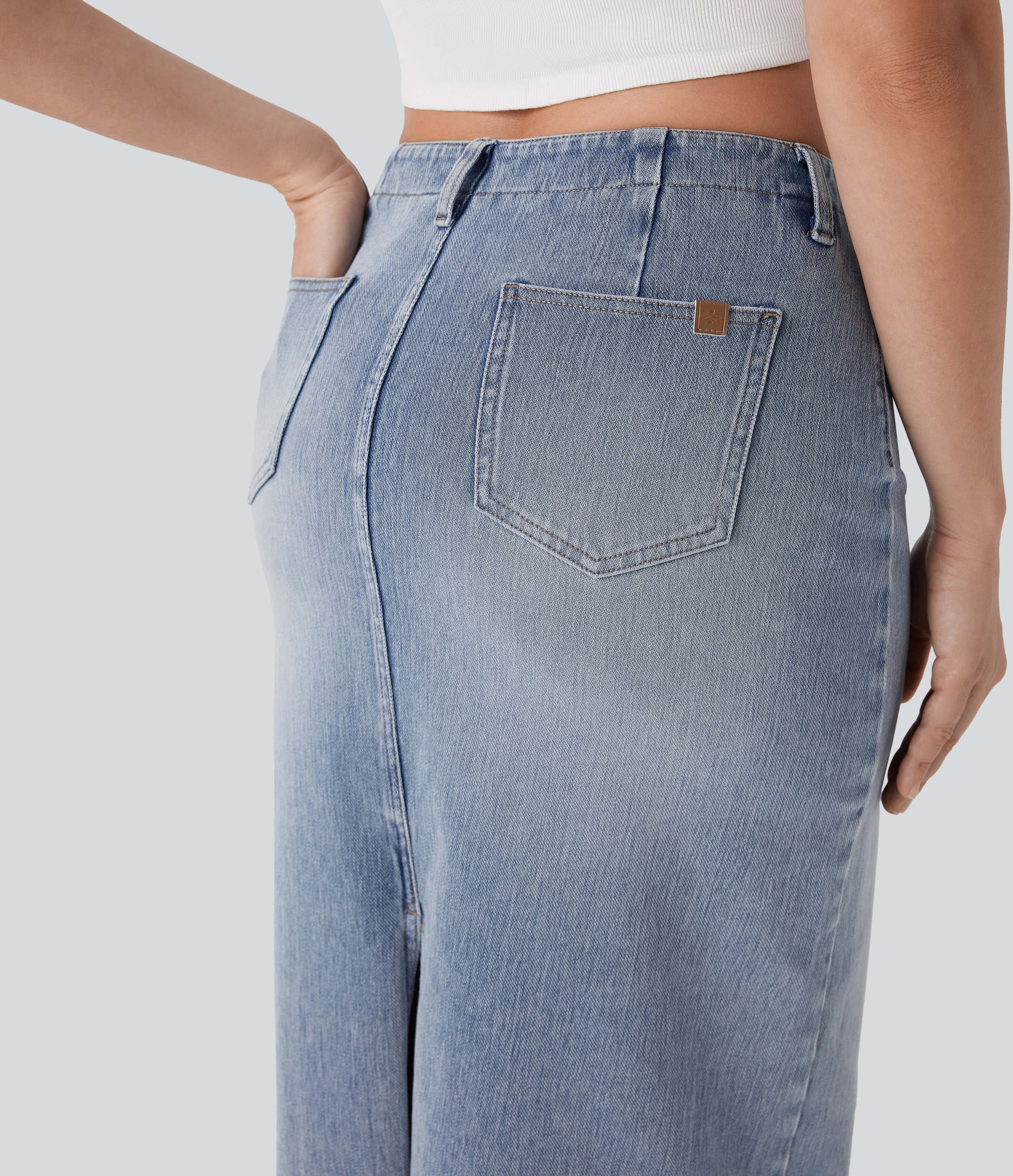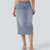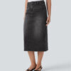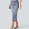 Halara FlexTM Mid Rise Back Midi Washed Denim Casual Straight Skirt with Pockets