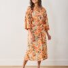 Get cozy with our Hedgehog Forest cotton robe with pockets in warm Peach Leaf. Charming hand-drawn hedgehogs nestle among autumn leaves on breathable organic cotton. This long robe with a belt offers elegant full-length coverage and deep pockets for evening essentials. The perfect layer for crisp mornings. Explore more robes and pajamas in vibrant prints for every season.
