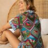 - Hand screen-printed fabric expertly crafted by artisans in India.
