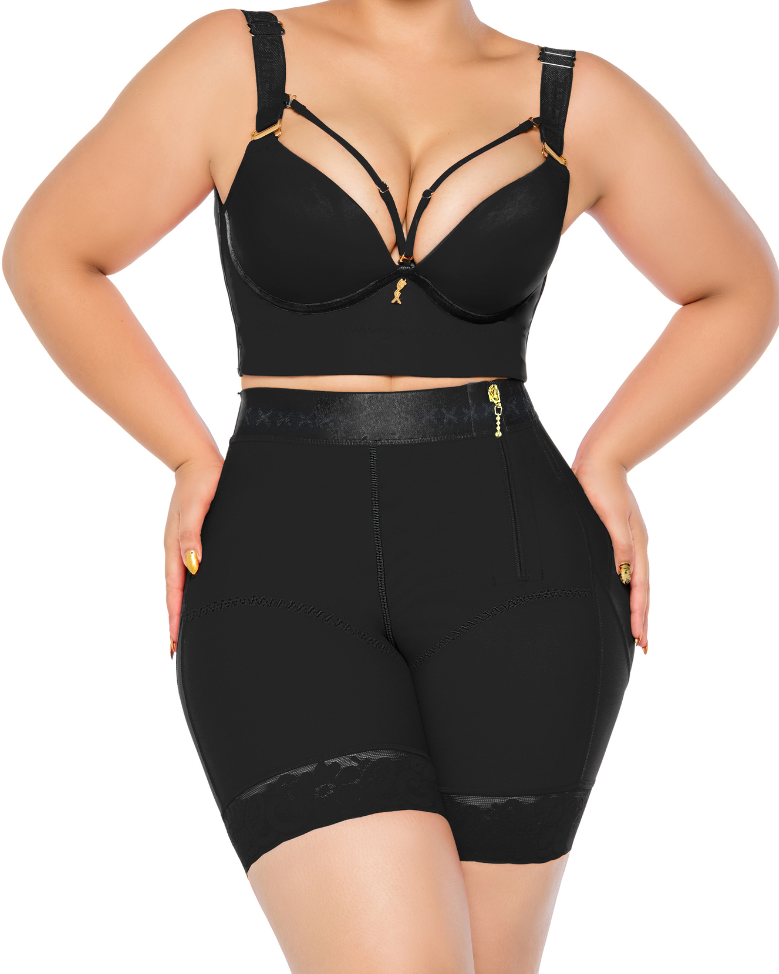 • The high-rise waistband features steel bones for added support and never rolls down.