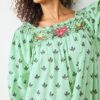 - Sizing: Maxi-style nightgown with smocked top, embroidered details, and pockets. 51″ long.