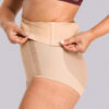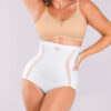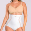 • Flexible steel boning on both sides and back of the waistband prevents rolling.