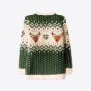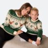 Kids’ Retro Reindeer Green Christmas Jumper