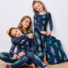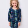 Holiday dreams come alive in our Leopard Nutcrackers kids’ pajama set in Navy. This whimsical design features big cats with festive nutcrackers on soft cotton knit for cozy comfort. The snug cotton PJs include a long-sleeve top and matching pants with a stretchy, stay-put waistband. Perfect kids’ festive sleepwear set for little cat lovers. Discover more magical prints in , , and .