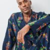 Discover festive comfort with our Leopard Nutcrackers men’s PJ set in navy. This holiday men’s pajama set features majestic leopards paired with whimsical nutcracker details on cozy organic midweight flannel. The classic button-down style and relaxed-fit pants with pockets create the perfect holiday sleepwear men will love. Ideal men’s pajamas for lounging or holiday gifting. Discover our complete collection of , , and .