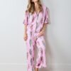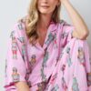 Holiday magic meets wild sophistication in our Leopard Nutcrackers satin lounge set in Pink Candy Cane. This pink satin pajama set features majestic leopards with whimsical nutcrackers on luxurious Eco Satin. The slightly cropped top creates a relaxed silhouette, while the satin wide-leg pajama pants provide high-rise comfort with deep pockets. Luxe holiday satin sleepwear for festive lounging. Discover more , , and .