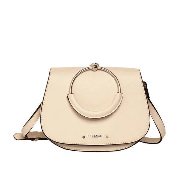 Neat and compact saddle bag style Lina is made in fine-grained PVC finished with a black piping and chrome trims. A chrome carry handle with padded grip and an adjustable shoulder strap make Lina versatile and cute.
