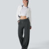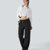 - Wide leg style gives a timeless look, while providing comfortable wear.