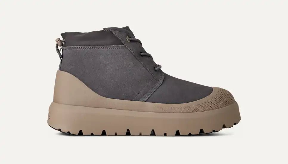 Our iconic heritage chukka, The Neumel, gets a weatherized upgrade. A timeless boot made of rich, waterproof suede, it’s lined in our UGGplush™ upcycled wool blend and finished with an outsole made from renewable, rainwater-nourished sugarcane for all-day cushioning and a signature Classic-like feel indoors or out. White Spider Rubber® outsole pods offer enhanced traction.