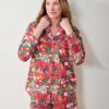 Drift into holiday magic with our Meowy Christmas cat PJ set in Red Bow. This festive cotton PJ set features playful felines decking the halls across breathable organic cotton. The cozy long-sleeve pajama top offers relaxed button-down styling, while the cat PJ shorts include pockets and adjustable drawstring comfort. Makes a delightful gift for cat lovers. Discover more whimsical prints in our and .