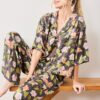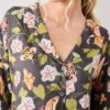 Let colorful moths guide your dreams in this nature-inspired satin pajama set in a Slate hue. Crafted from silky Eco Satin, the slightly cropped top pairs perfectly with flowy wide-leg pajama pants featuring pockets and breathable comfort. This lounge set makes bedtime a magical escape, perfect for cozy evenings in elegant style. Explore more dreamy prints in our and .