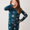- Fit: Slim-fit kids PJ set with crewneck long-sleeve top and pants featuring encased elastic waistband. Snug and stretchy style following national safety regulations. For child’s safety, pajamas should fit snugly. This garment is not flame resistant. Loose-fitting garments are more likely to catch fire.