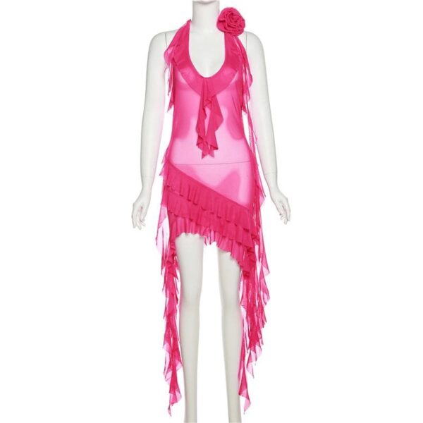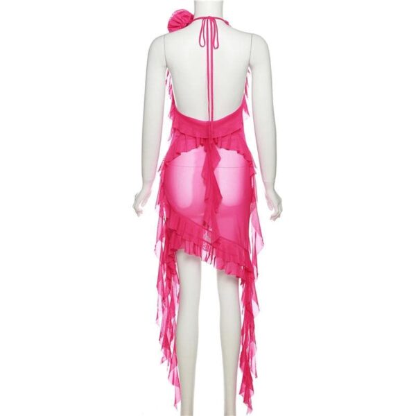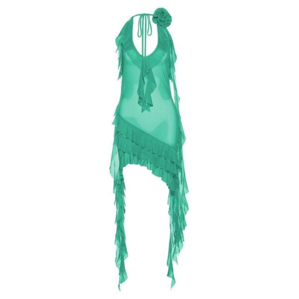 Be the first to review “See through halter sheer mesh ruffle flower applique mini dress”