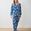 Cozy up to your kingdom with our Tiger Queen flannel PJ set in rich Navy. This pajama set features our fierce feline majesty on lightweight organic flannel. The roomy button-down top and comfortable full-length pants with pockets create the ultimate navy pajama set for year-round lounging. Perfect for nights of fierce style and luxurious comfort. Discover more hand-drawn prints in our and .