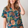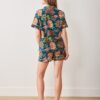 - Fit: Button-down top with relaxed fit and comfortable silhouette. Mid-rise shorts featuring an elastic waistband, adjustable drawstring, and 2 ¼” inseam. Shorts have pockets.
